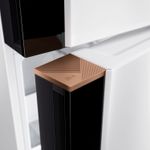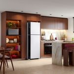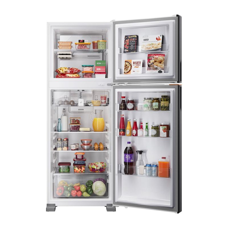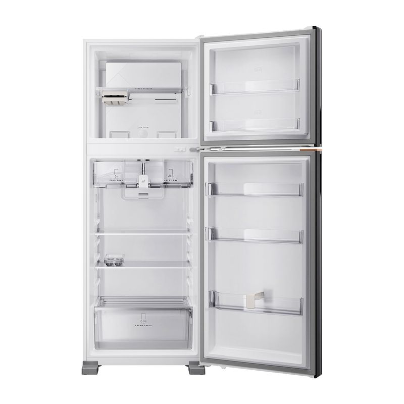 | Acabamento interno | Prateleiras do refrigerador em vidro com perfil traseiro em plástico extrudado e perfil frontal em plástico extrudado; Prateleiras de porta em plástico injetado e texturizado; Gaveta de legumes em plástico injetado, texturizado e tampografado; Tampa de gaveta de legumes em plástico injetado |
