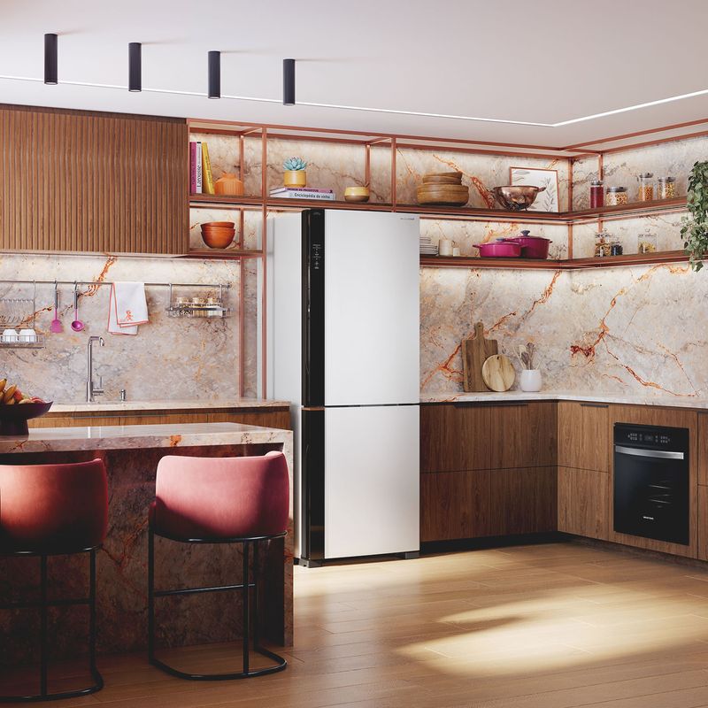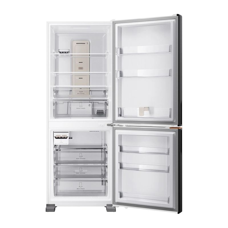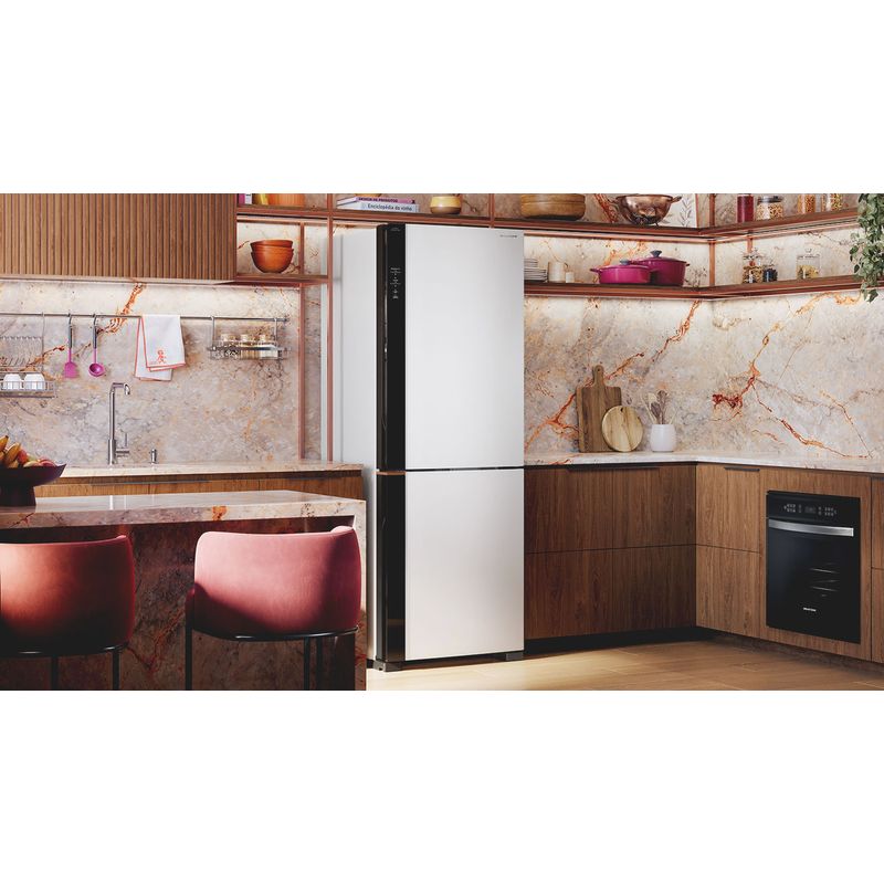 | Textos legais | [1] Resultados obtidos a partir da média de testes internos com: pêra, repolho, tomate, nos modelos BRM62, BRE66 e BRE68. [2] Resultados obtidos a partir de testes internos. com os alimentos: maçã, pêra, kiwi, repolho, chuchu, tomate. [3] Quando comparado a classificação energética da classe C (Padrões Mínimos de Eficiência Energética - Minimum Energy Performance Standards - MEPS) no padrão INMETRO (Norma IEC 62552-3:2020). [4] Maior capacidade líquida de geladeiras 2 portas (com freezer embaixo), plataforma de 70cm do mercado, segundo a GFK FY'2024. [5 ] Maior capacidade líquida do compartimento freezer, considerando geladeiras 2 portas (com freezer embaixo), plataforma 70cm do mercado, segundo a GFK FY'2024. [6] Medidas das refeições congeladas: 150 x 100 x 40mm [7] Teste realizado conforme procedimento interno, que simula carne congelada (conforme pacote da IEC 62552-1:2015 Anexo C) do momento da queda de energia até -6°C, com temperatura ambiente de 25ºC, sem aberturas de portas no período sem energia. [8] Modelos Cor Inox e Black Inox. Conforme política de garantia descrita no manual do produto, a garantia cobre defeitos de fabricação, mas não inclui danos causados por mau uso. [9] Mais de 100 testes, incluindo os exigidos pela regulamentação vigente. |