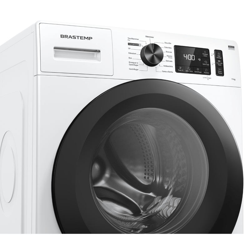 | Ciclos de Lavagem | 15 Ciclos: Tira manchas PRO, Edredom, Vaporizar, Extra Silencioso, Antibactéria, Rápido 15 min, Dia a Dia, Delicado, Cores Duradouras, Brancas, Enxaguar e Centrifugar, Centrifugar, Lã, Cama e Banho e ECO. |
